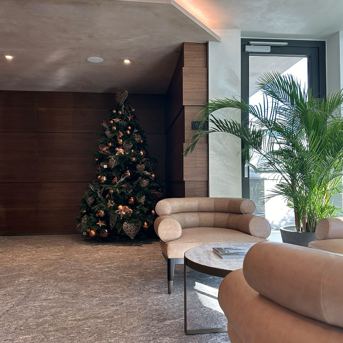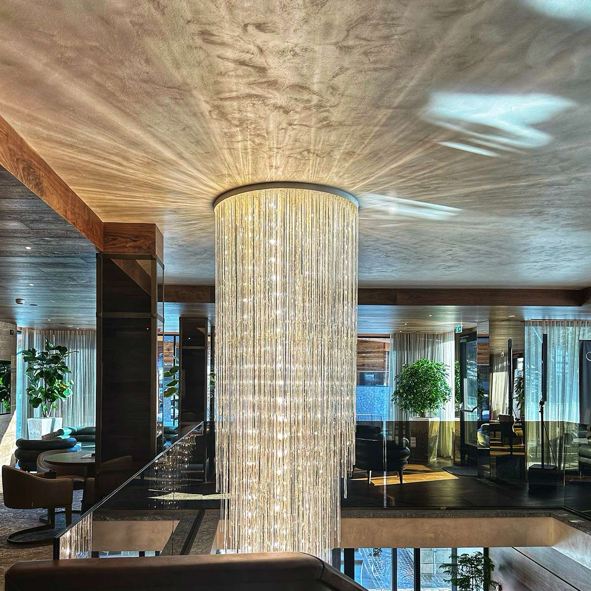 Das Hotel Splendid befindet sich in Madonna di Campiglio in den italienischen Alpen. Novacolor Ambassador Natalino Meloni gestaltete die Wände mit edlen und raffinierten Oberflächen wie Marmorino KS, Dune, Archi+ Pietra Intonaco sowie Metallo_Fuso in der Nuance Ottone. So entstand eine elegante, luxuriöse Atmosphäre, die perfekt zum exklusiven Charakter des Hauses passt.