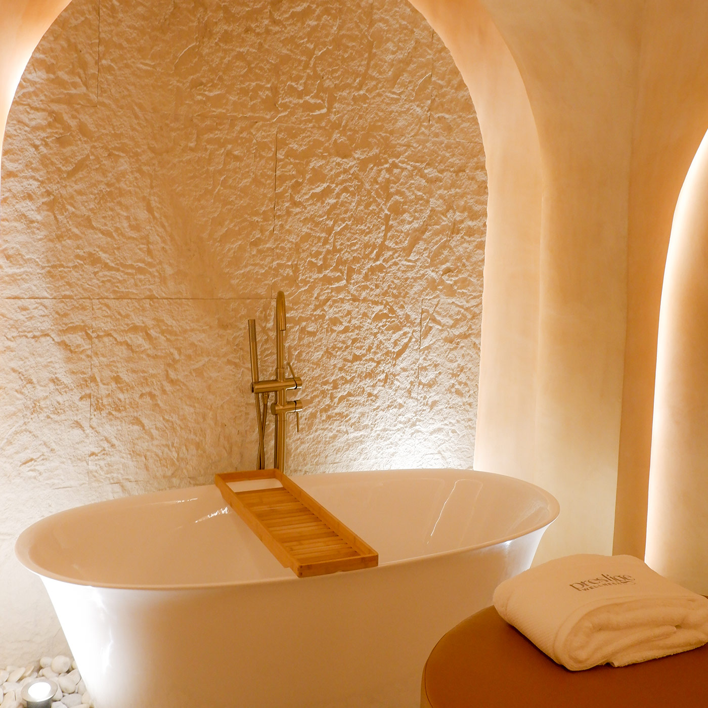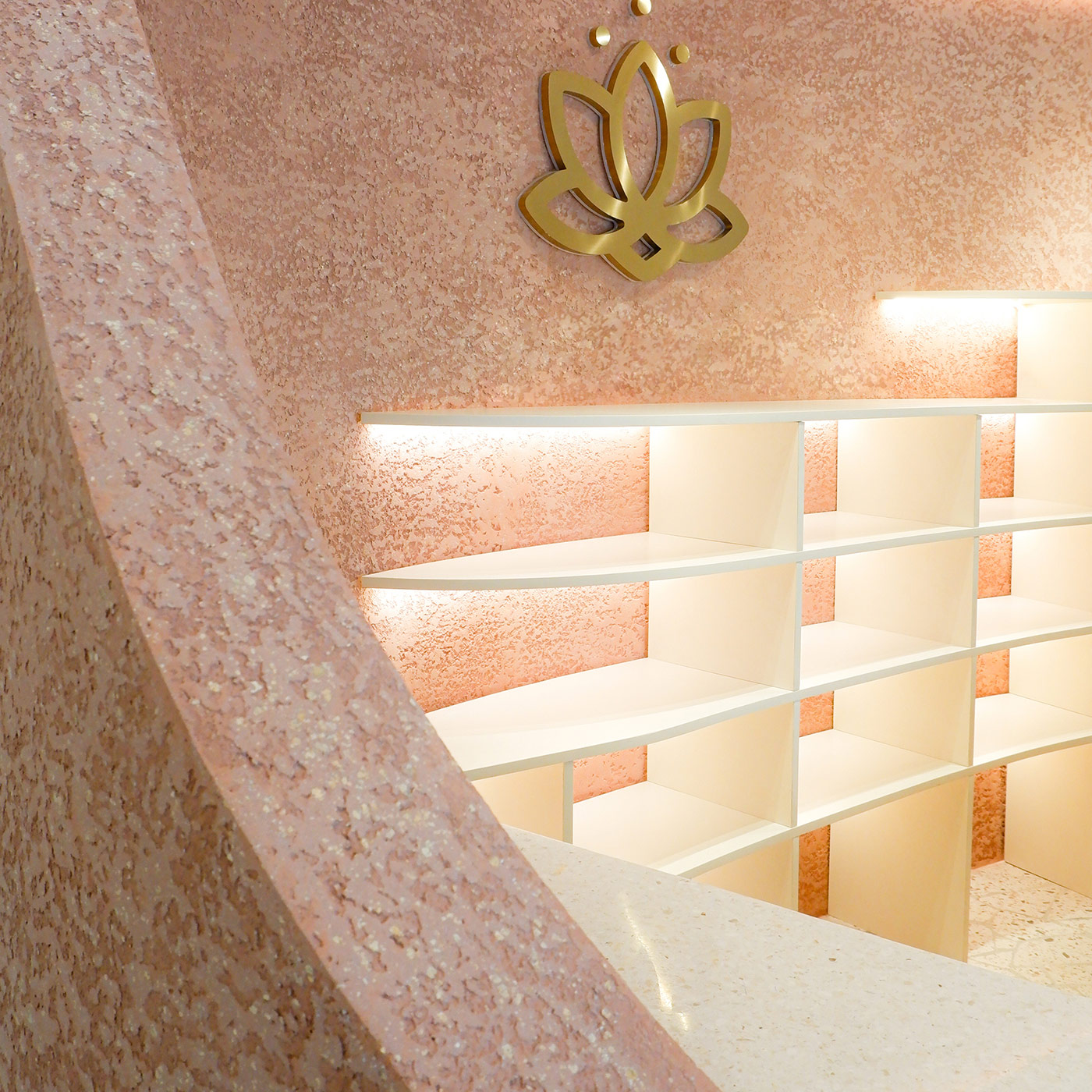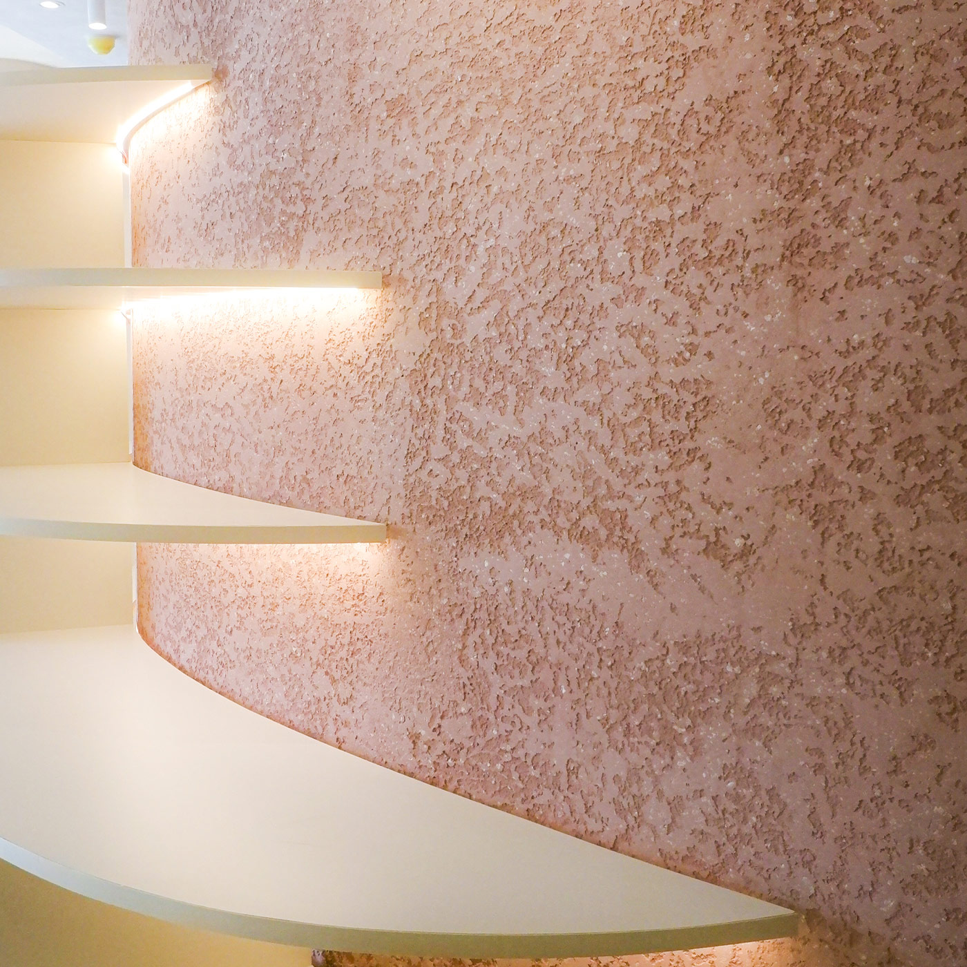 Das Prestige Wellness befindet sich in Bonifacio Global City, in der Nähe von Manila. Der Empfangsbereich ist mit Archi+ Pietra in einem wunderschönen Rosaton gestaltet. Diese Premium-Oberfläche verbessert nicht nur die Ästhetik, sondern verleiht auch Struktur und Tiefe, wodurch eine luxuriöse und einladende Atmosphäre entsteht. Treppe und Wände sind mit Marmorino KS verkleidet und bilden so eine prachtvoll strukturierte Oberfläche.