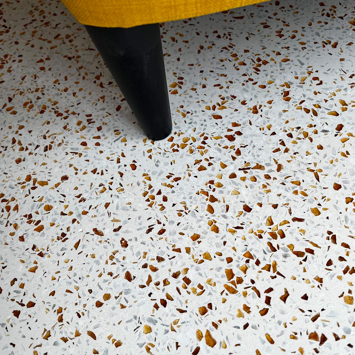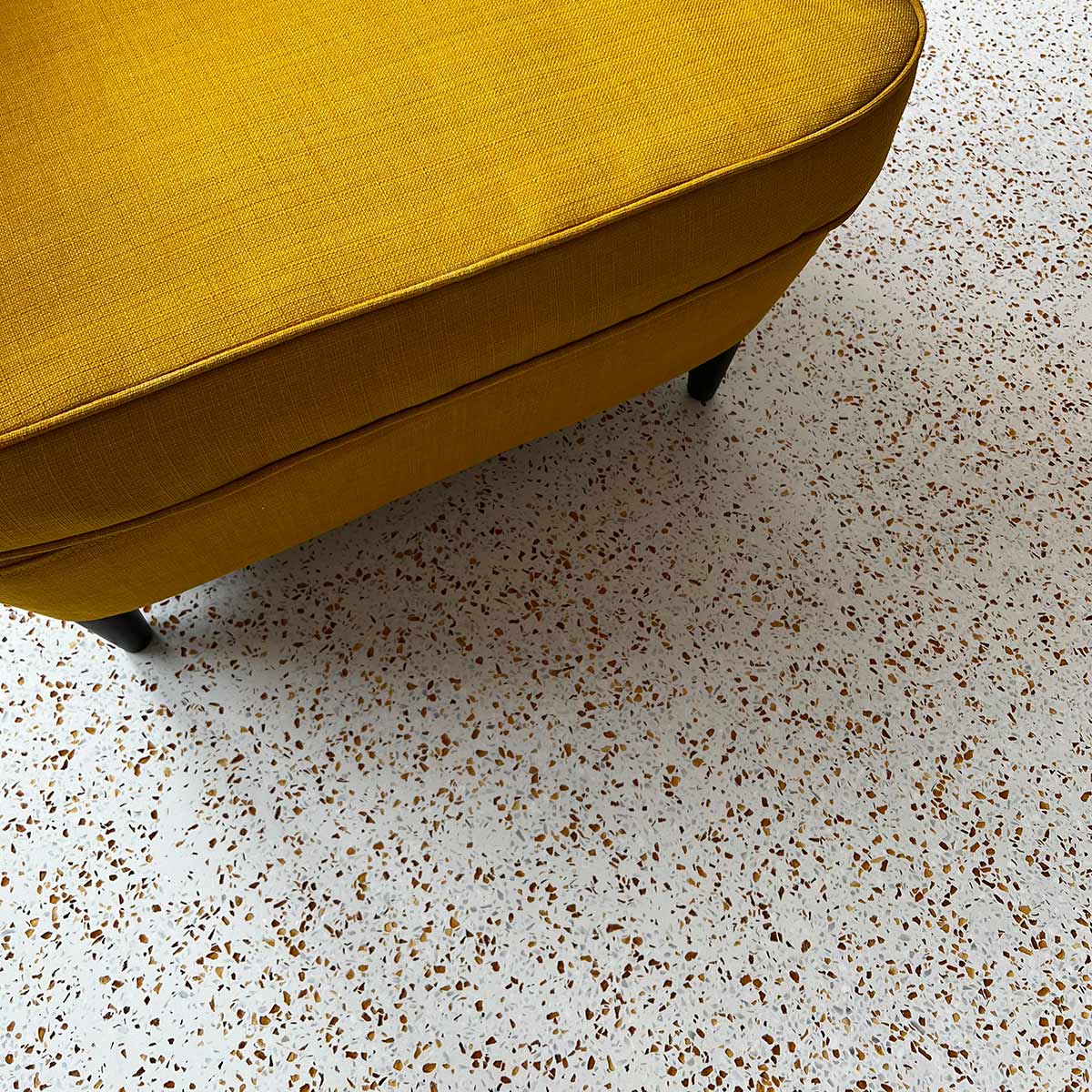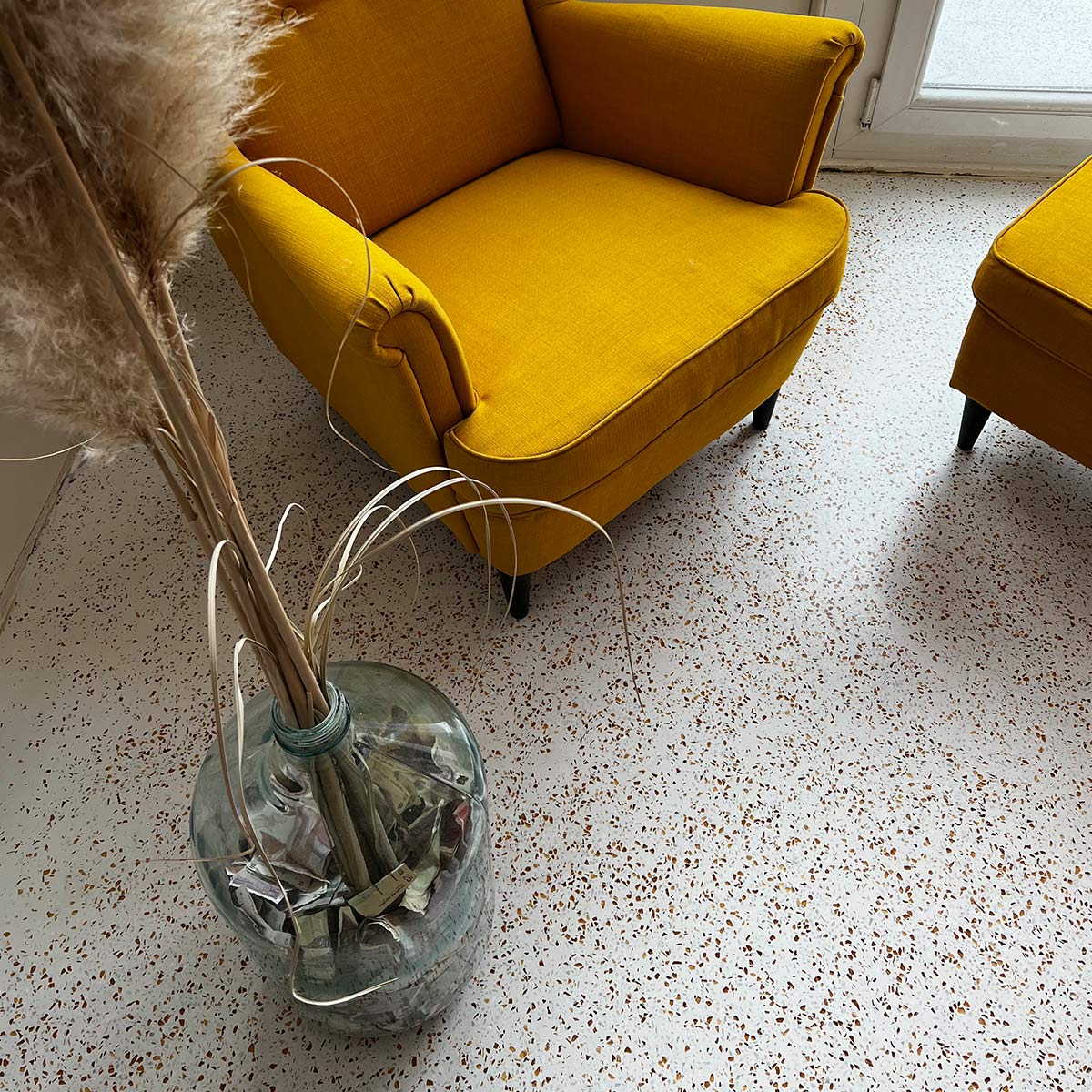 Dieses private Apartment befindet sich in Zagreb, Kroatien. Der Fokus des Projekts liegt auf dem Boden, der mit Wall2Floor Terrazzo in der gewählten Farbe Topazio gestaltet wurde und dem Raum eine elegante, zeitlose Ausstrahlung verleiht.