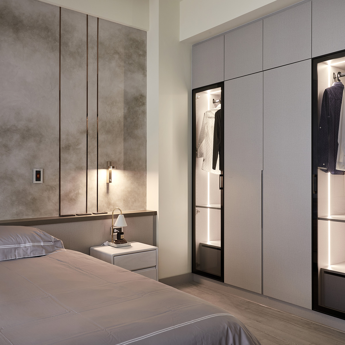 Das Hauptschlafzimmer wurde mit Marmorino KS ausgeführt.